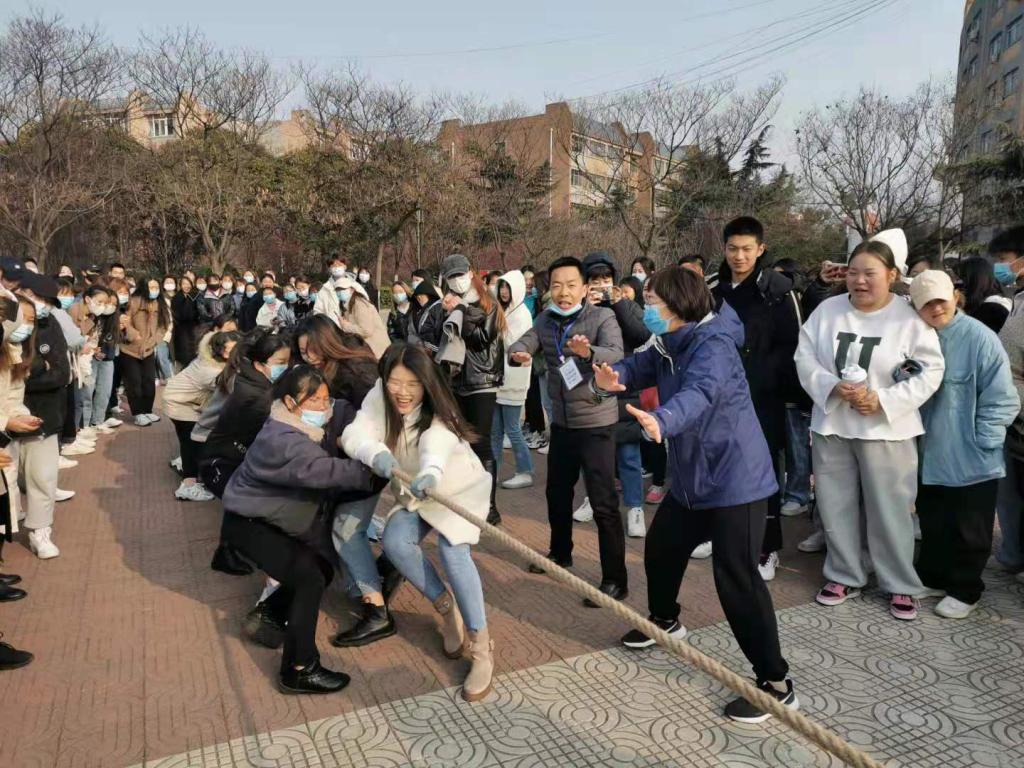 为迎接女神节的到来,丰富同学们的课余文化生活,进一步提高各班同学的团队合作能力和凝聚力,3月7日上午,yl6809永利拔河比赛总决赛于文化广场如期举行。公司员工管理副经理周凤雷、员工科科长闫慧峰及全体辅导员到场观看并加油助威。
