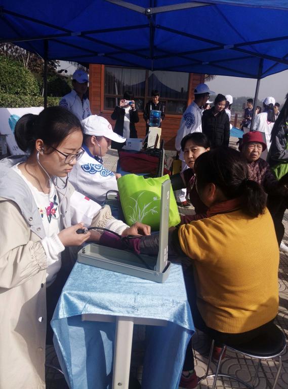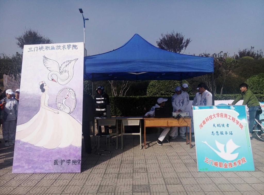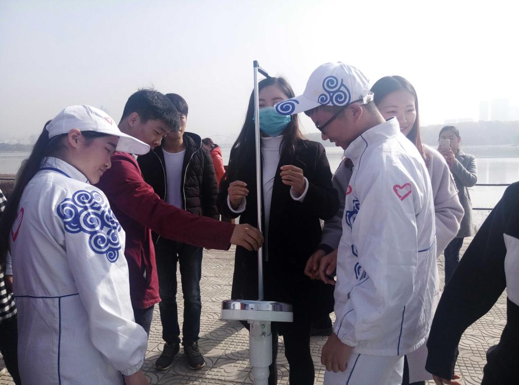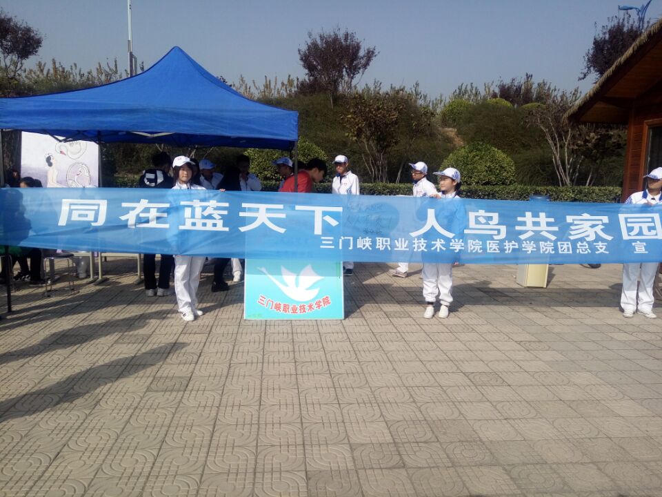 “天鹅使者志愿服务站”——为游客免费测血压、称体重、量身高等……路过的男女老少都能在我们宣传“同在蓝天下,人鸟共家园”的横幅上留言合照。活动不久便迎来了很多游客,和我们一起呼吁“保护天鹅,人人有责”的口号,团总支成员们都认真负责自己的工作,我们深深感受到团总支的任劳任怨以及团结合作精神。