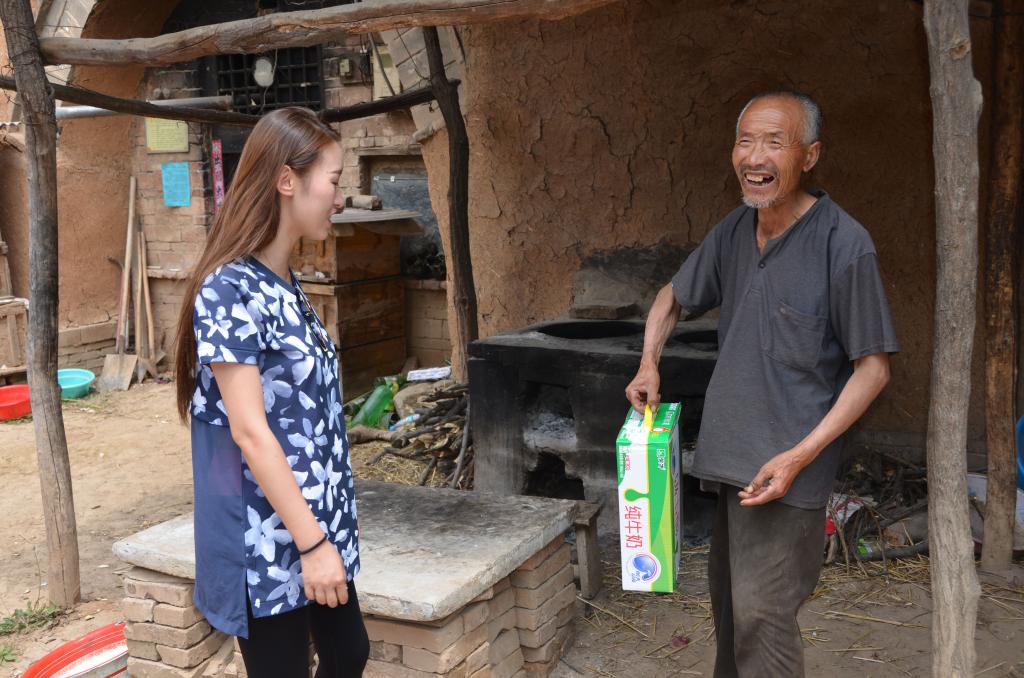 上午8点,志愿者们来到陕州区西张村镇庙洼村,为使老人和孩子们感受到更多的爱与温暖,他们特意准备了牛奶,粘土,笔记本,画笔等。志愿者们分成两组,一组人员运用所学的专业知识为老人们进行健康义诊,并为他们建立健康卡,志愿者们还走街串巷向村民们发放保健知识宣传单,讲解当季流行病和慢性病的预防知识等;另一组人员走访部分贫困户慰问独居老人,为他们送去慰问品,陪他们聊天,做一些力所能及的事,让老人们感受到来自天使的温暖。