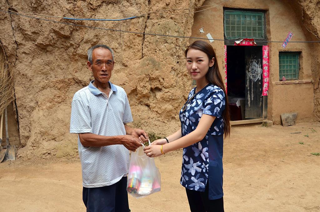 在关爱独居老人的同时,志愿者们也走进了留守儿童的家中,印象最为深刻的是一个14岁智力有障碍的女孩,“如果可以,我想跳舞,像你一样,自由飞翔——”小女孩的梦想,在这一刻我们的志愿者用天使的翅膀拉起她的手同她一起翩翩起舞,志愿者把带来的精致彩笔、粘土、文具等礼物送给她时,这位小女孩露出了最美的笑容……