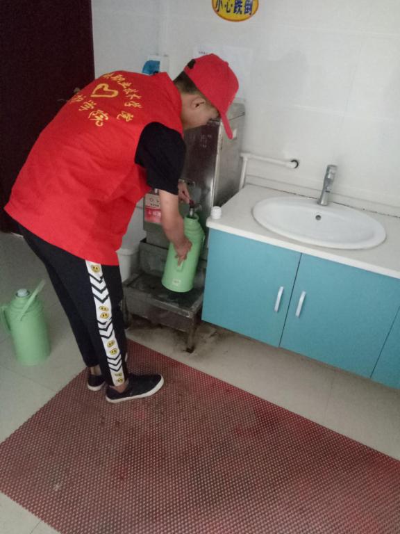 志愿者为老人打水