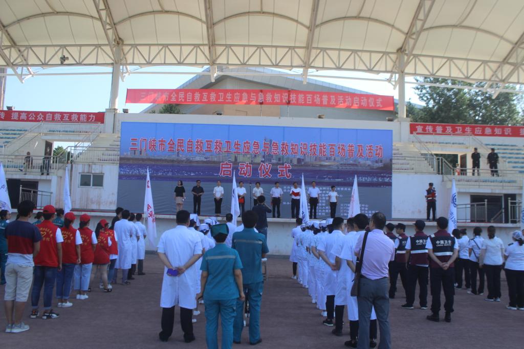为积极响应河南省卫生计生委《关于印发河南省全民自救互救卫生应急知识技能百场普及活动工作方案的通知》,进一步提升广大市民卫生应急自救互救能力,提高人民群众应对突发事件的应急意识和综合素养,6月12日上午,由三门峡市卫生和计划生育委员会主办、三门峡市120急救指挥中心、三门峡市中心医院、黄河三门峡医院等10余家医疗机构联合公司开展的三门峡市全民自救互救卫生应急与急救知识技能百场普及活动启动仪式在yl6809永利运动场隆重举行。