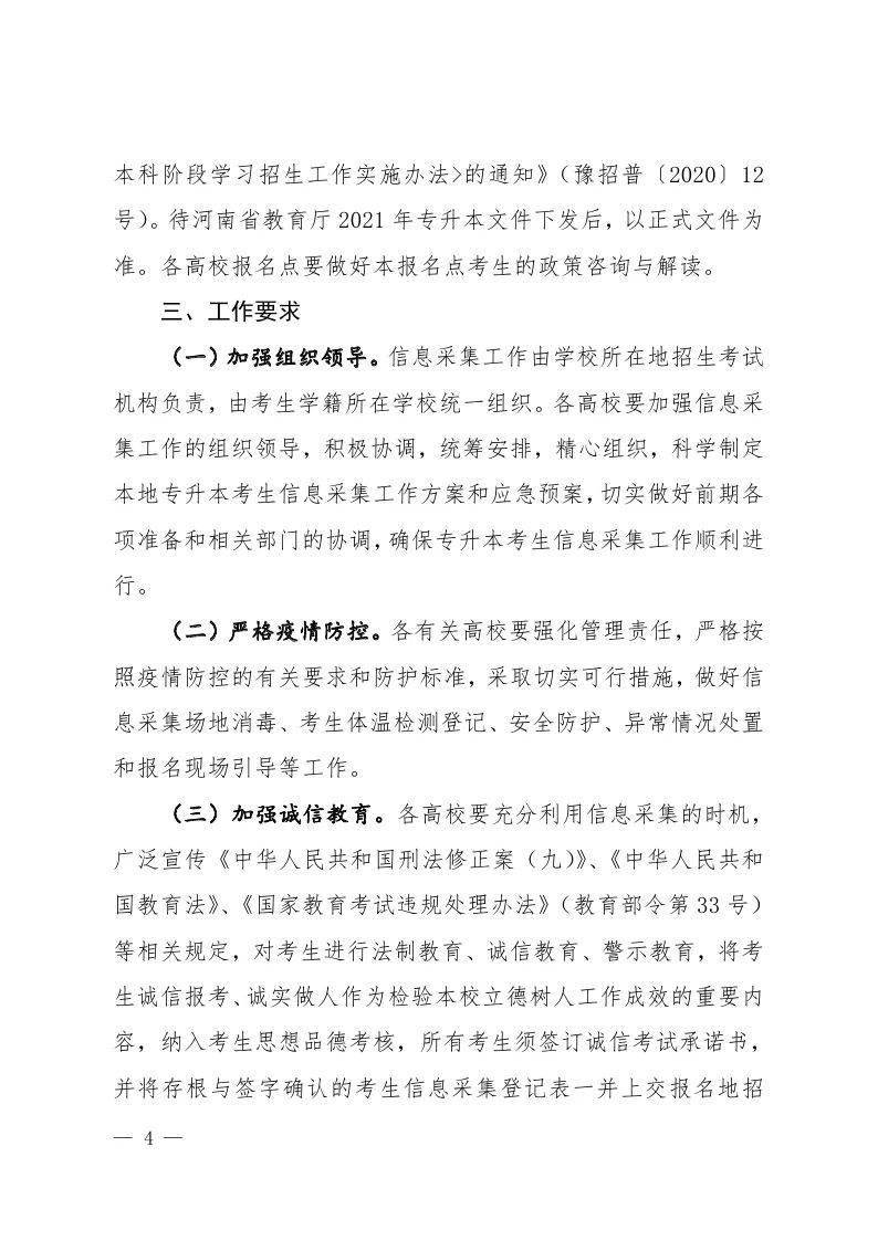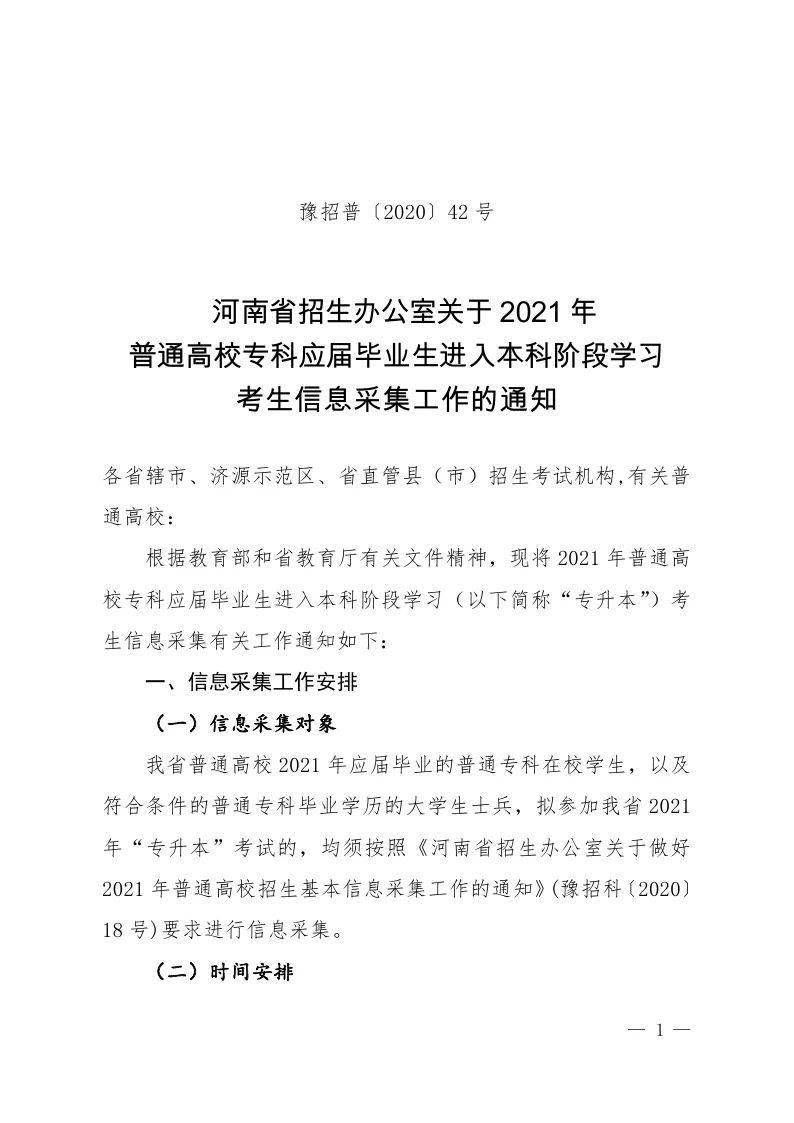 《2021年专升本考生信息采集工作的通知》豫招普〔2020〕42 号