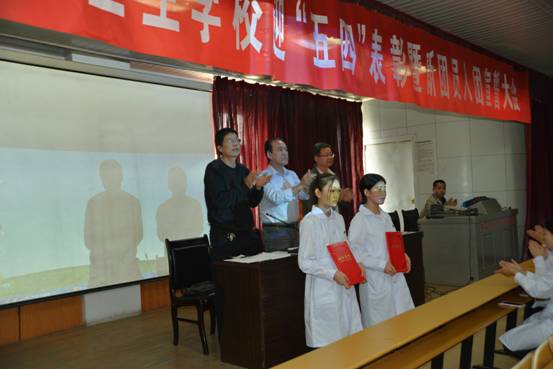 5月4日下午,公司在实验楼多媒体教室召开了2016-2017学年“五四”运动95周年表彰暨新团员入团宣誓大会,鼓励和表彰在2016-2017学年度校团委在工作战线上涌现的先进集体和个人。公司党总支组织委员、副董事长杜宇恒、办公室主任吉剑英、员工科长申建平,出席了大会。