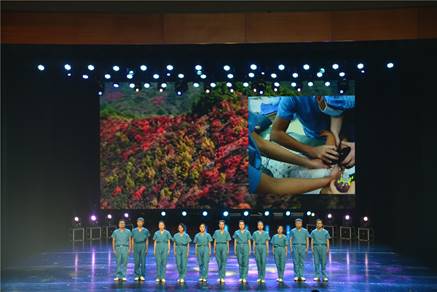 文艺汇演节目形式丰富,护理礼仪展示、情景剧、朗诵、舞蹈、歌曲等让人应接不暇。演出在开场舞《节日》中拉开序幕,yl6809永利的教师与市中心医院的护士长为公司的护理专业员工进行了授帽,并带领他们进行了宣誓。市中心医院的医生们的诗朗诵《青春》“走心”演绎感人肺腑;公司员工演出的情景剧《“救”在身边》展示了“急救”在生命遇到危险时的重要作用;歌曲《圣洁的真爱》嘹亮而坚定,描绘着白衣天使们的美好;歌曲《我们的中国梦》将整台文艺汇演的气氛推向高潮。