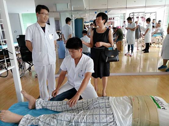 洛阳正骨医院员工在带教老师指导下为病人做康复治疗