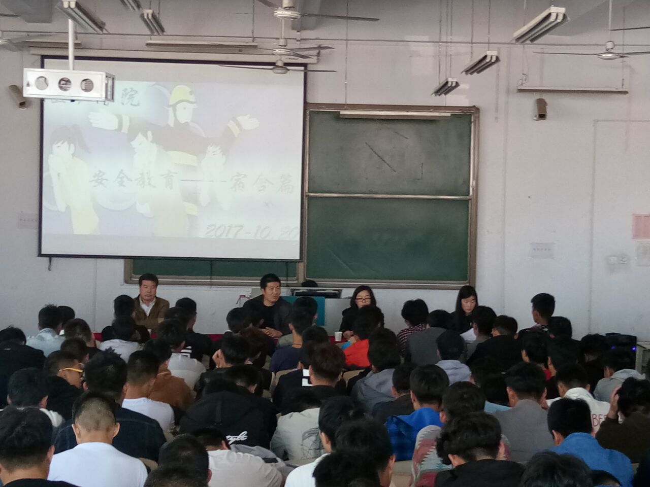 接下来闫慧峰科长结合近段时间宿舍存在的安全隐患问题,从人身安全、财产安全、网络安全、饮食安全等方面提醒同学们一定要树立高度的安全防范意识,并要求各宿舍长切实负起责任,共建安全宿舍。
