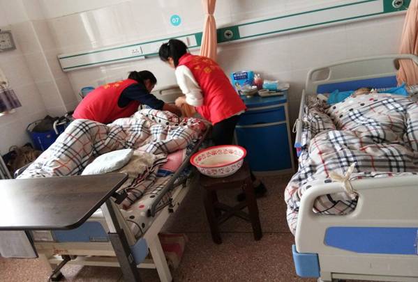 志愿者为老人洗头、刮胡子