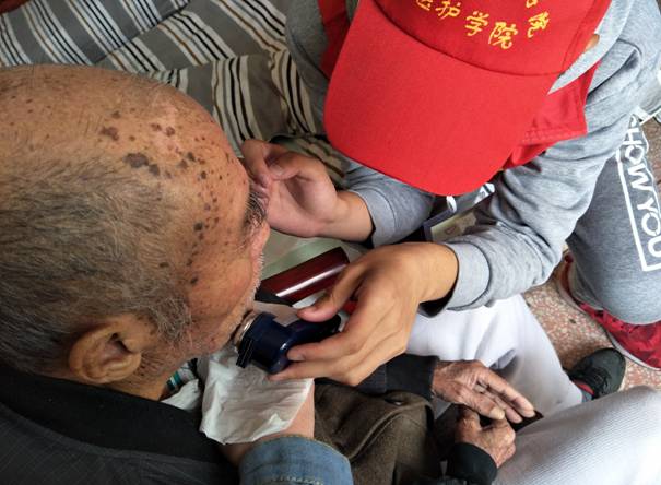 志愿者为老人捏肩