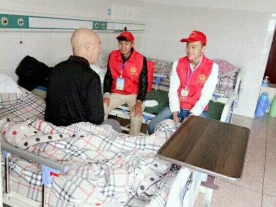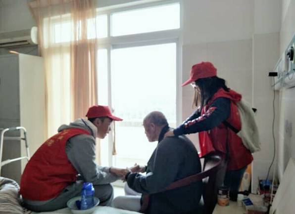 志愿者一行按照工作人员安排,来到敬老院507室,完成了拖地、擦桌子、清洗生活用品等一些清洁工作之后,他们随同院内的工作人员参观了敬老院,参观中得知这里有两位生活不能自理的老人,其中一位老爷爷是灵宝人,今年已经87岁了,因子女都在外地工作,没时间照顾他才住在这里,接下来,志愿者们就陪老人家聊天、喂水、修剪指甲、按摩,看到老爷爷的胡子有些长,还给老爷爷刮了胡子,老人看起来精神了许多,情不自禁地热泪盈眶,向我们志愿者伸出了大拇指……。临走前,同学们还与老人们约定,以后只要学习有空闲,一定会经常来看望他们的。老人们像送别自己的孙辈一样,依依不舍。