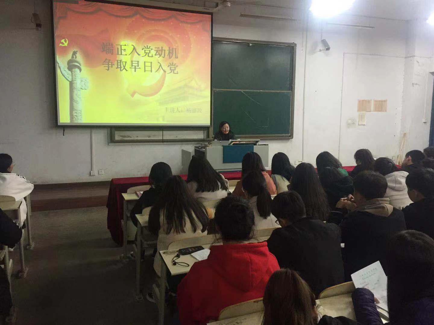 开班仪式结束后,党总支书记杨丽波为本次培训班作题为《端正入党动机,争取早日入党》的开班讲座。杨书记用朴实语言,对老员工的实际情况进行分析,阐明只有树立坚持为人民服务的信念,才是最纯粹,端正、正确的入党动机。只有为了献身共产主义事业,更好地为人民服务而要求入党,才是唯一正确的入党动机。之后又向在座的积极分子提出要求:要不断学习,端正动机;加强世界观的改造,树立正确的人生观价值观;从小事做起,从身边做起;在学习生活中起到模范带头作用,不断完善自我;要做到姓党、知党、爱党。只有这样才能做到早日入党。最后杨书记告诫大家:组织上入党,一生一次!思想上入党,一生一世!