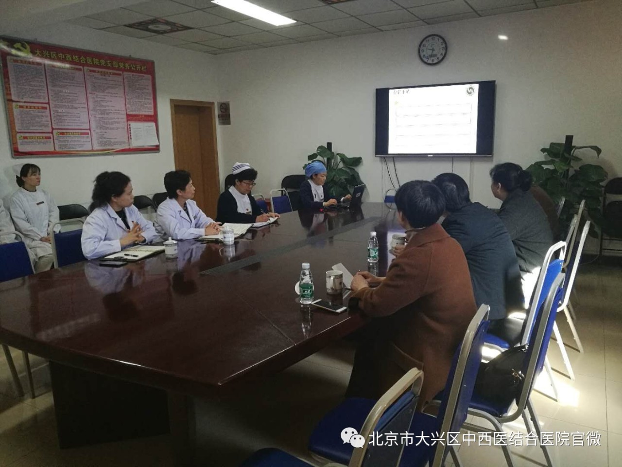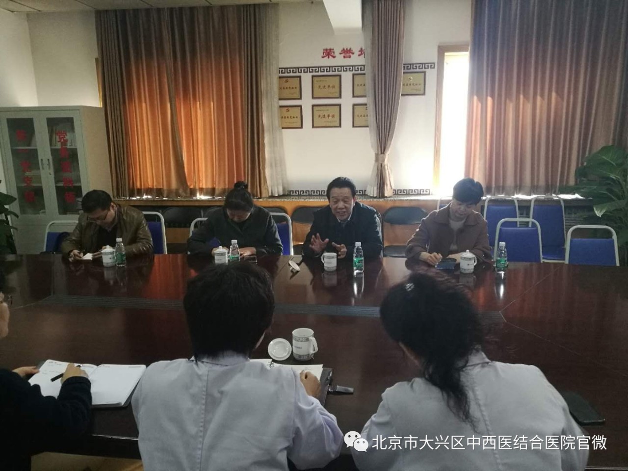北大人民医院王建六副经理、大兴区中西医结合医院王海英经理对刘书记一行的到来表示热烈的欢迎,北大人民医院护理部李晓丹副主任介绍了员工的实习情况和实习员工的综合表现,大兴区中西医结合医院护理部冯文英副主任介绍了2018年度对实习生的带教工作及管理情况,王海英经理表示,大兴区中西医结合医院会为每一位实习生提供优质的实习环境和舒适的生活环境。刘书记对北大人民医院和大兴区中西医结合医院的护理带教工作给予高度的评价,感谢医院的付出和对员工的关心、教育和指导。并真诚的感谢两家医院在员工就业方面给予的支持,要求实习员工要抓住在北京实习的大好时机,在实践中开阔视野、巩固基础、勇于实践、增长才干,同时强调,在外实习,不只代表个人形象,更重要的是代表公司的形象,他勉励实习员工要互相帮助,努力进取,时刻不忘展示公司员工良好的学风作风。刘书记表示希望双方建立密切合作关系,互利双赢、相互支持、教学相长,推动双方教学工作不断提升。