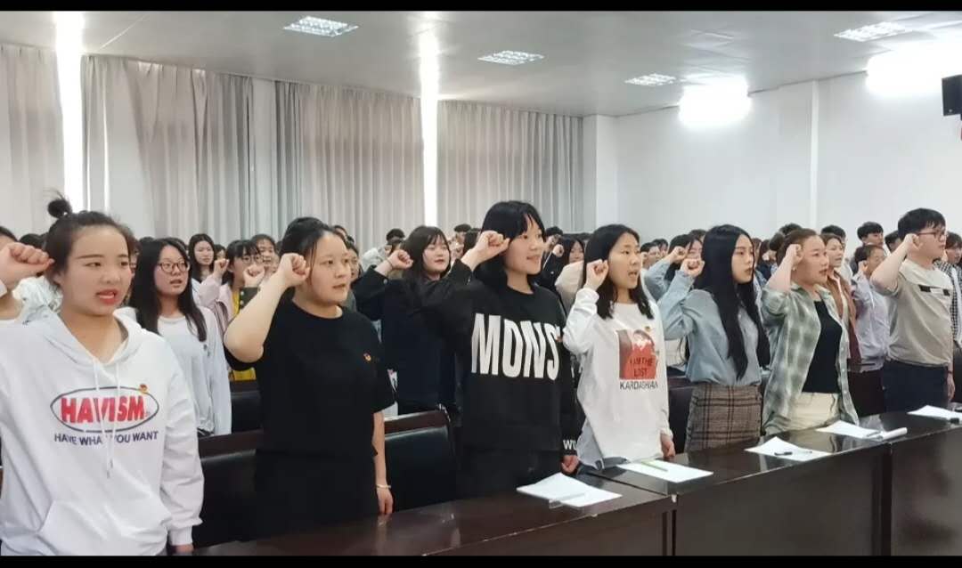 活动在《国歌》声中拉开序幕,全体团员肃然注目,高唱国歌。随后,公共教学部就业指导教研室,思政教育齐潇晓老师应邀为大家上主题团课。齐老师围绕五四精神的具体内容、五四精神的新时代内涵、学习五四精神的重要意义展开讲述,为广大团员青年上了一堂具有深刻意义的主题团课。紧接着,团员代表发言,表示将带动身边的同学一起努力学习,为实现中华民族伟大复兴贡献力量。随后全体团员青年面向团旗,在庄贤涛同学的领誓下,庄严肃穆地重温入团誓词,回首入团初心。