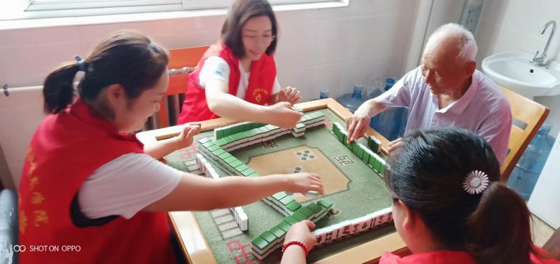 志愿者们一踏进老年公寓,老人们就兴奋的主动打招呼,脸上满是笑容。在老年公寓负责人付经理的带领下,党员同志们和同学们分工合作。有的为老人整理卫生、梳头发、陪老人打麻将,有的党员同志们深入到老人们的房间,与他们聊天畅谈,了解老人们的身体、日常生活、饮食起居等情况。员工志愿者还为老人们送去了精彩的节目、、、、、、从老人们的眼神中,大家感受到了老人们的开心与快乐。临行前,党员们把准备的慰问品送到了老人们手中。