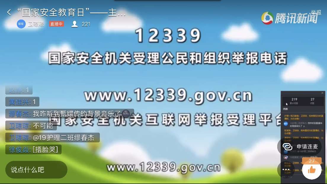 4月15日,公司组织员工观看以“同上一堂国家安全教育课”为主题的国家安全宣传教育活动。2000余名医护学子通过登录中国老员工在线、易班、国家开放大学网站及有关在线教育平台,错峰错时观看学习“2020年全民国家安全教育日高校公共课”。