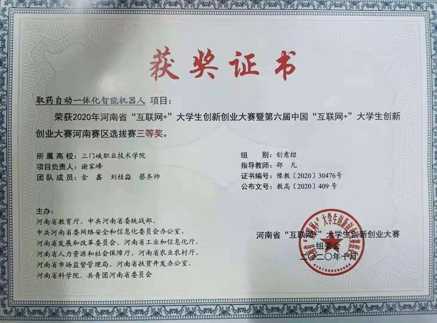 3月15日,yl6809永利2020年创新创业大赛及挑战杯大赛表彰大会在教学楼1106举行。公司《“阳光天使”——健康应急救护队助力乡村》、《取药自动一体化智能机器人》和《盲人智能轮椅》3个项目入围并获得三等奖。