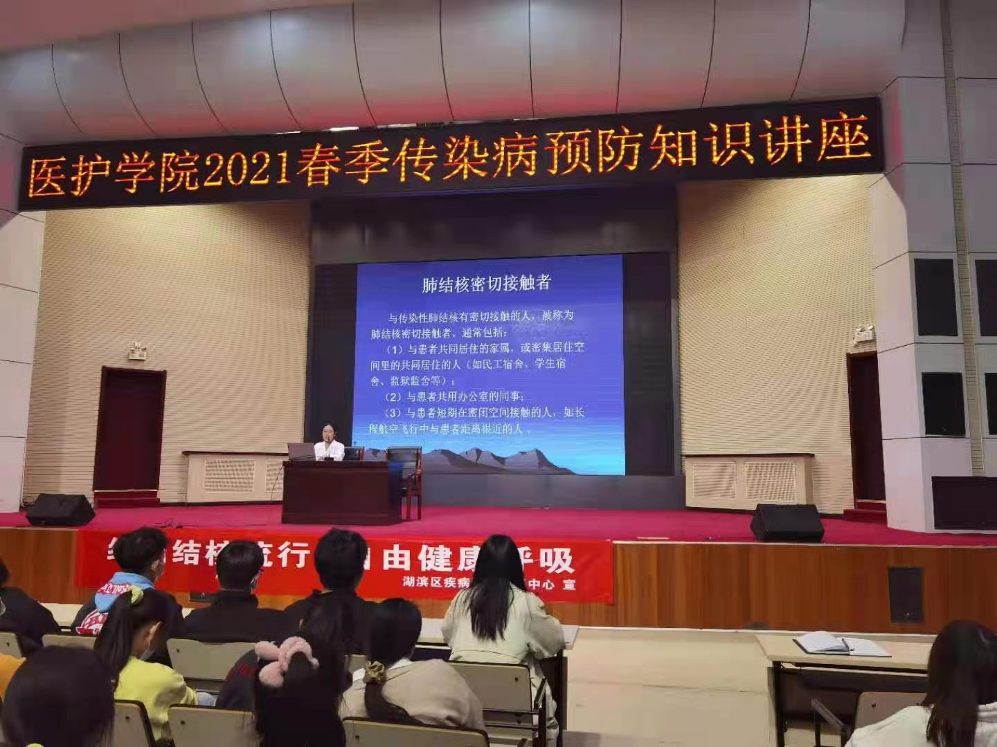 3月24日,值第26个“世界结核病防治日”来临之际,为了使员工更多地了解预防春季传染病知识,由校医院与yl6809永利联合举办的春季传染病预防知识讲座于学术报告厅举行。本次讲座特邀请三门峡市湖滨区疾控中心副主任、兼流行病艾滋病防治科科长陈欣主讲,yl6809永利600余名师生到场聆听。讲座由yl6809永利管理副经理周风雷主持。