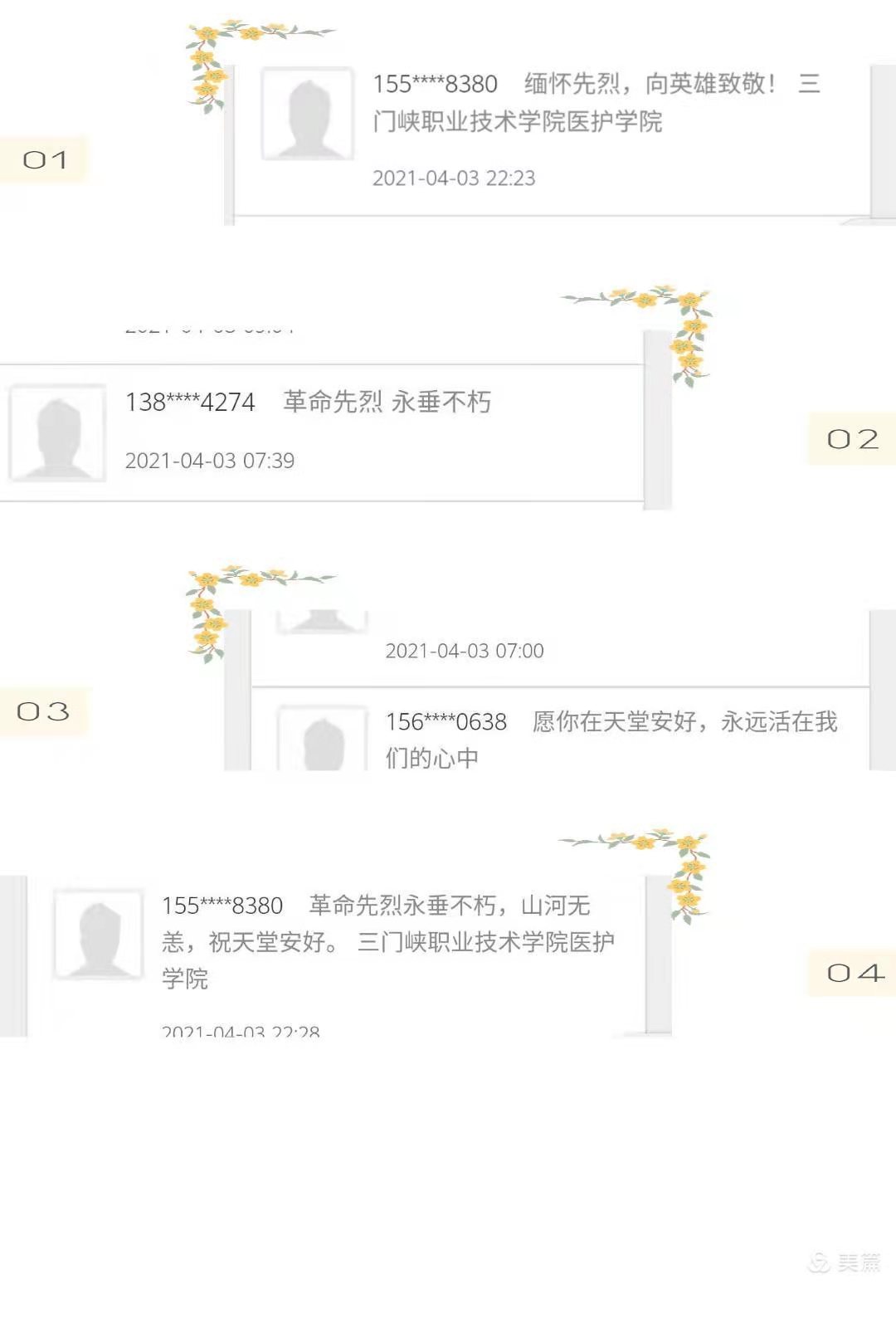 4月1日至5日,组织各班员工登录中华英烈网,向为民族独立、人民解放和国家富强、人民幸福作出巨大贡献和牺牲的英雄烈士鞠躬鲜花、抒写感言寄语,使同学们再一次深刻认识红色政权来之不易、新中国来之不易、中国特色社会主义来之不易。