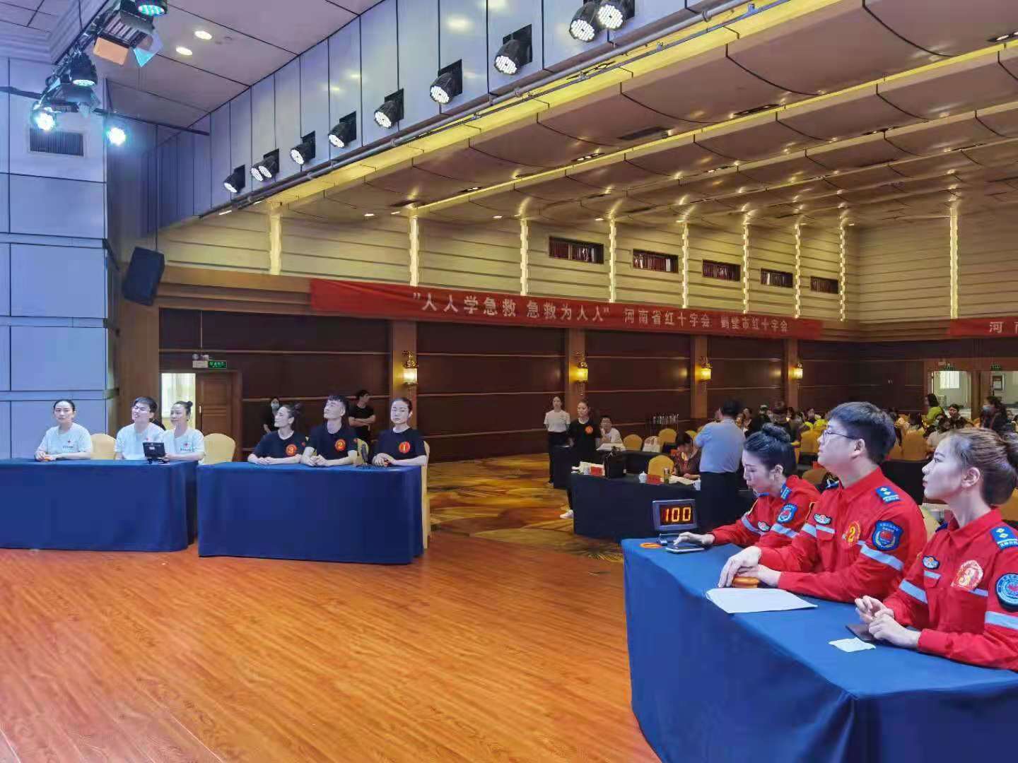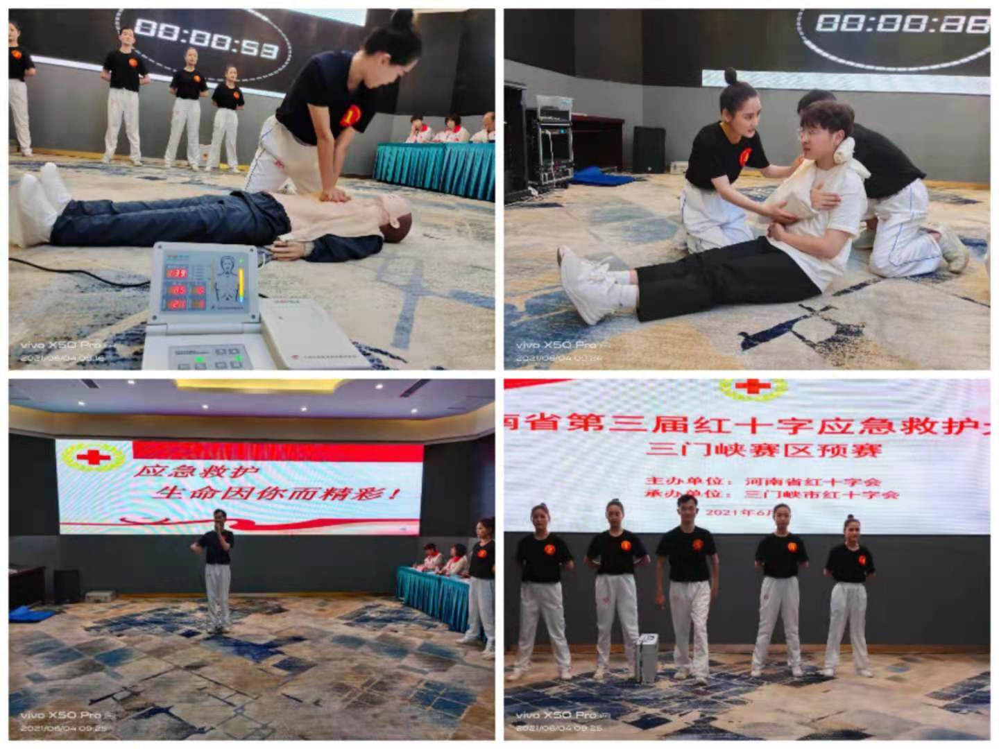自五月份启动以来,本次大赛得到了公司领导的高度重视,安排专人负责参赛的相关工作。在备赛训练期间,三门峡市红十字会专职副会长赵 菁、三门峡市红十字会秘书长翟巧玲多次来到训练场地观看、指导,并安排派专业人员到场指导,为比赛提供必要的物资,为队员们加油鼓劲!公司员工认真备赛,不负众望,于6月4日在三门峡片区预赛中以小组第一的成绩获得豫西赛区一等奖,成功晋级决赛。