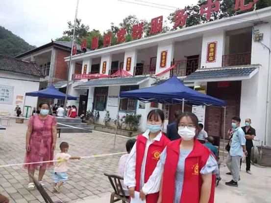 20级护理8班曹永丽,在卢氏县凤凰村参加核酸检测志愿服务。