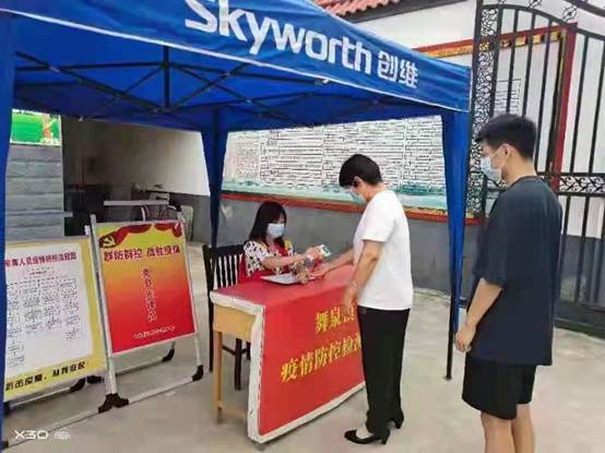 20级中外护理1班张超冉,在封丘县城关镇防疫服务点,义务帮忙防疫登记和测量体温。