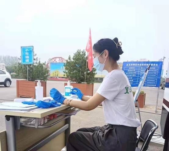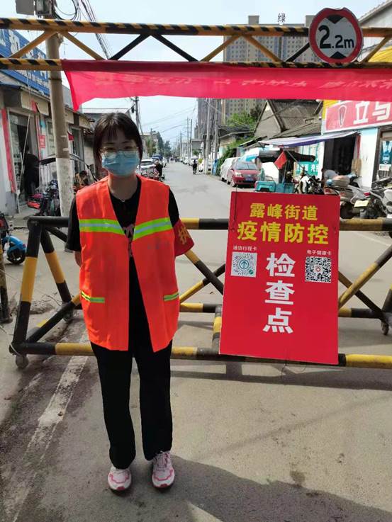 20级护理5班马慧慧,在家乡灵宝市志愿者服务,负责维持现场纪律、登记录入来往人员个人信息,排查并督促大家进行核酸检测。