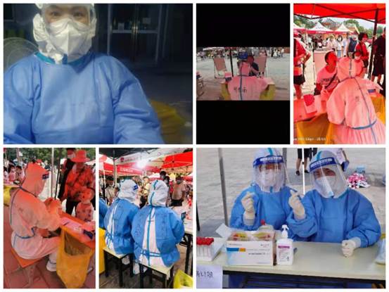 在三门峡市中心医院实习的公司19级员工樊辉千、时晓雨、熊月月、胡吉学、张霞、黄立芯等同学分别在涧河街道第六社区卫生服务站、植物园、公园玖号社区卫生服务站、涧河第五社区卫生服务站等参与三门峡全员核酸检测。