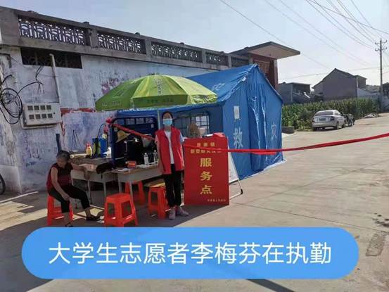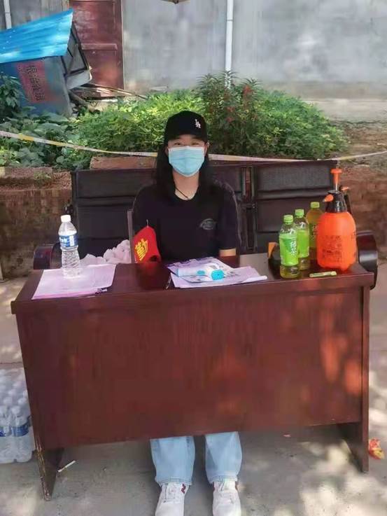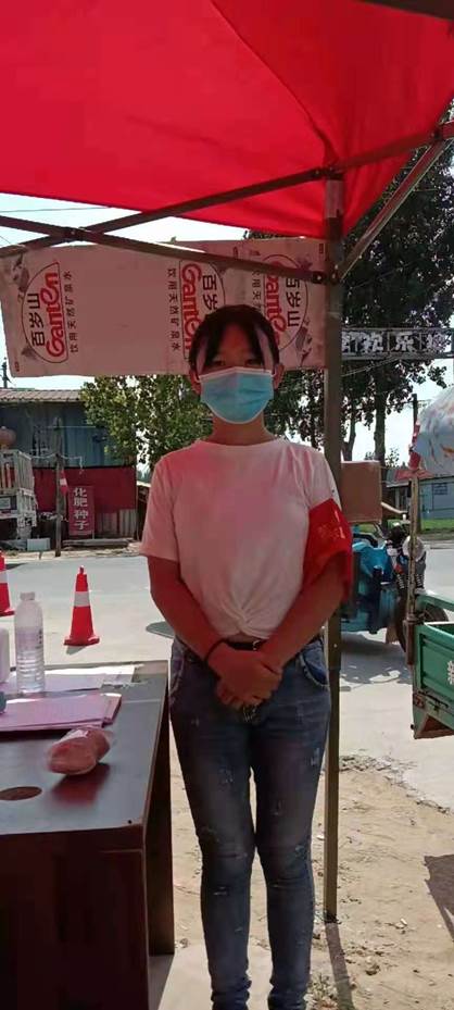 20级护理9班张雨荷,在洛阳佃庄镇相公庄村参加疫情防控志愿服务。