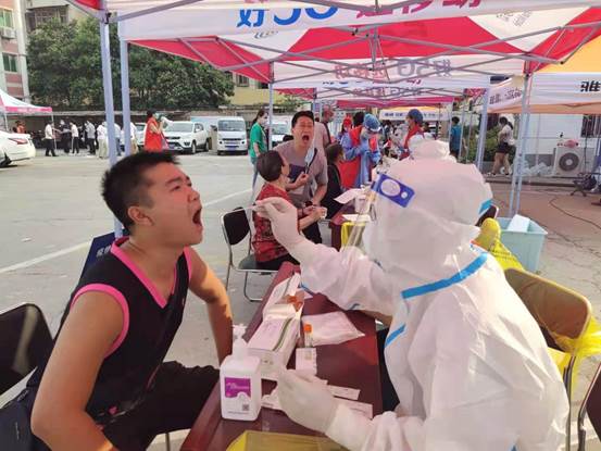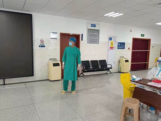 19级国际护理1班毛创,参与河南科技大学第一附属医院核酸检测,为中建五局员工服务。