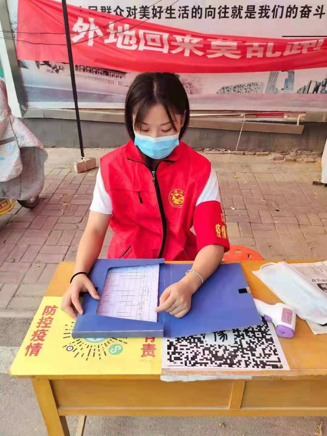 20级护理4班麻沛,加入家乡祥符区青年防疫志愿者服务队,积极配合防疫工作,每天负责给来往人员测量体温,登记来往车辆信息,组织流动人员扫健康码和流程卡。
