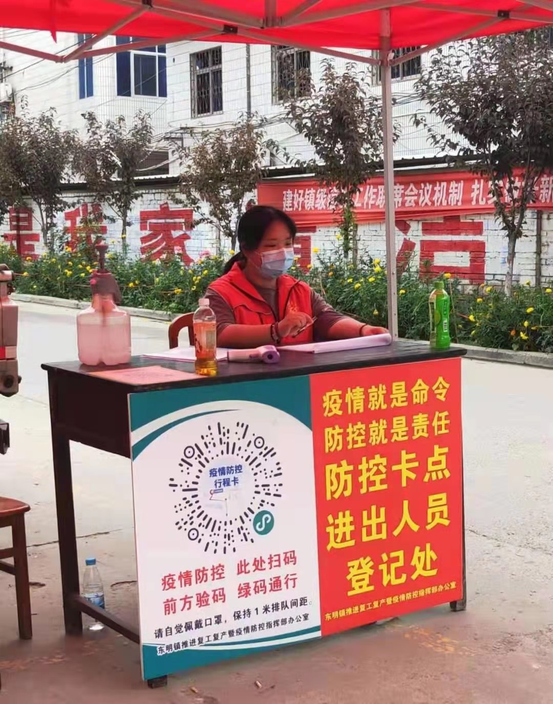 20级国际护理1班宁一帆,在三门峡市卢氏县东明镇疫情防控卡点当志愿者。