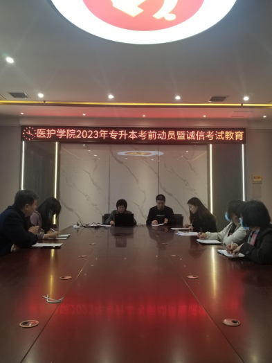 会上,专升本负责人袁培老师就2023年专升本考试相关要求进行了详细解读。辅导员代表卫琼琼老师对全体考生进行了诚信教育,要求大家严守考风考纪,诚信考试。员工科科长闫慧峰就考试前后的安全注意事项进行了再强调,安全重于泰山,希望同学们时刻牢记心中。最后,周风雷副经理作总结讲话,重申了诚信考试和安全的重要性,并从心态调整、生活作息方面给大家作了温馨提示,叮嘱同学们在最后的紧要关头要拥有“四心”:必胜的信心、淡定的平常心、高度的细心和坚定的恒心。