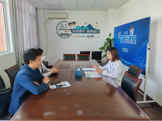 与杭州医公司附属义乌医院副经理吴苏萍、科教科科长任少平、护理部主任黄静、人事科副科长陈凯明等相关负责人进行座谈
