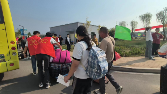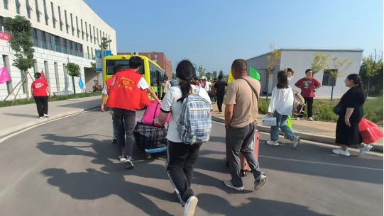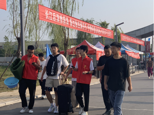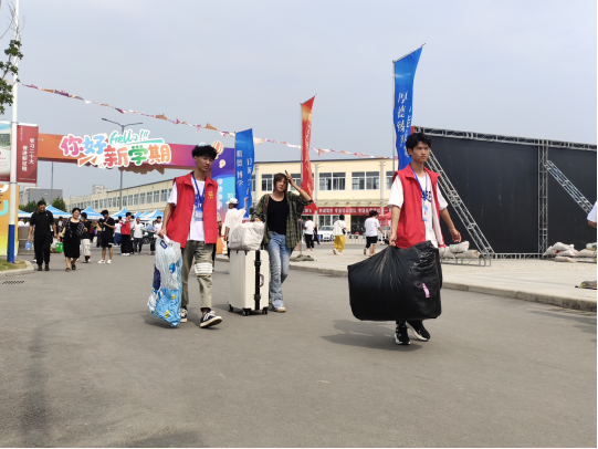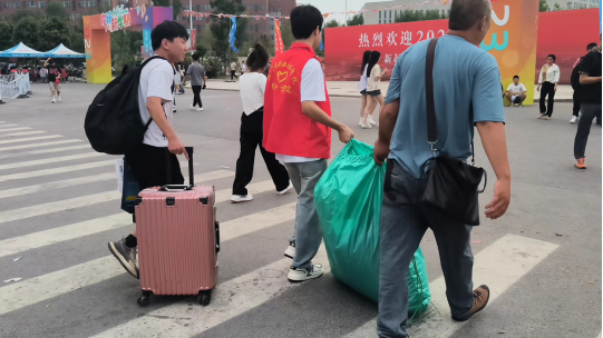 校门口随处可见的志愿者 他们接过学弟学妹手里的行李 带他们走进公司