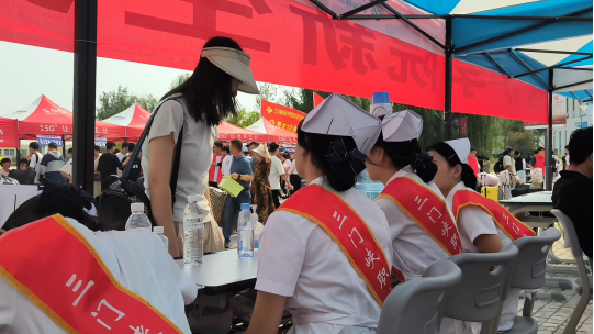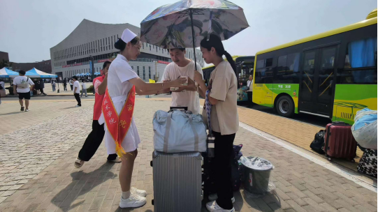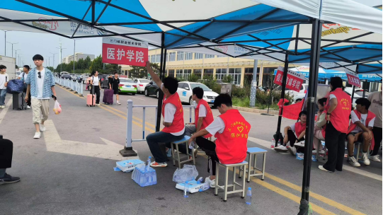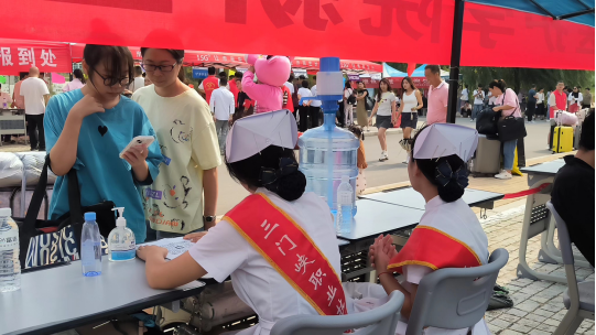 校内,老师和学长学姐们早已等待多时,他们耐心解答新生们的各种疑惑,并设茶水站和医疗服务站,给予新生和家长贴心的帮助。