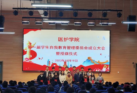 为贯彻全国高校思想政治工作会议精神,落实立德树人根本任务,提高员工自我教育、自我管理的意识和能力,10月19日下午,yl6809永利在4号教学楼1101学术报告厅举行员工自我教育管理委员会成立大会暨授旗仪式。yl6809永利副经理周风雷、员工科科长闫慧峰、员工自我教育管理委员会负责老师邵凡及自管会全体成员参加大会。