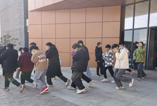 本次消防演练分应急疏散和灭火演练两个环节进行。应急疏散环节,闫慧峰科长给同学们讲解了消防安全的重要性及本次消防演练的目的和意义,强调了本次应急疏散的路线和注意事项。随后,按照演练预案,哨声一响,7#教学楼上的员工听到火灾逃生信号后,在员工干部和辅导员的现场引导下,利用事先准备好的湿毛巾等逃生用品,迅速按照疏散路线有序撤离。各楼层、楼梯拐弯处和教学楼出口均有工作人员现场指挥,帮助员工安全顺利撤离至公司操场等安全地带。员工撤离到安全地带后,老师迅速清点各班级员工人数,并及时上报。整个演练过程紧张、迅速、安全、有序。