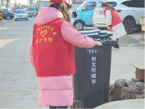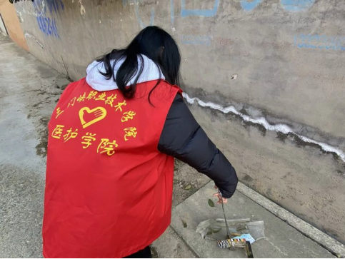 上午九点整,志愿者们在团总支志工部部长陈俊辉的带领下出发前往冯佐村。到达目的地后,大家两两结合为一个小组,然后分散开来,一边向街上的村民发放预防支原体肺炎宣传页,一边利用专业所长为村民们普及宣讲冬季流感、传染病等防护知识,耐心认真,态度严谨又热情高涨。在志愿者的讲解下,村民们纷纷戴上口罩并表示受益匪浅。宣讲结束,志愿者们纷纷拿起劳动工具对街道垃圾进行清理,使得街道面貌变得焕然一新!