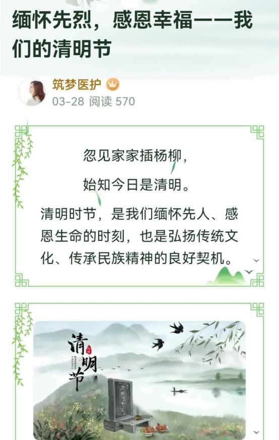 3月26日,yl6809永利团总支宣传部积极搜集清明节传统文化习俗知识,制作精美的展板和美篇推文,通过线上线下相结合的方式,为同学们营造文化氛围,使医护学子更深刻地认识和接纳传统文化,激发他们对民族文化的热爱之情,促使其积极传承和弘扬民族文化。