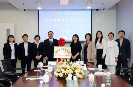 首先,校企双方召开了座谈会,就加强校企交流合作、毕业生实习就业、人才培养等方面进行深入洽谈。最后校企双方签订护理实习、就业基地协议,揭牌“护理实习就业基地”。并且校企双方本着深入推进产教融合,拓宽毕业生就业渠道,提高毕业生就业质量的共同愿景,进一步深化合作关系,同时,校企双方也希望在今后能够携手共进,互惠互赢,将校企合作推向新的高度。