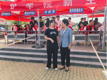 其间,校领导颉潭成经理一行莅临现场指导工作,询问新生报到情况、了解报到进展,并亲切慰问了在场服务的志愿者和老师们。