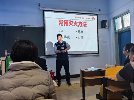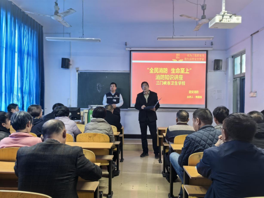 为加强公司消防安全宣传教育,强化师生消防安全意识和知识,学习并掌握防火常识,在全国第33个消防安全宣传教育日到来之际,11月5日下午3点,公司特别邀请三门峡市宣安消防服务中心焦国强讲师在教学楼503室举行一次消防安全知识专题讲座。卫校校区全体教职工、员工班干部、宿管员、餐厅服务人员等聆听了讲座。