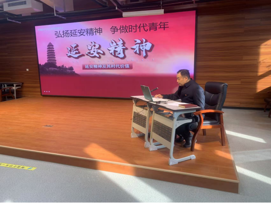 随后张书记从延安精神的形成和发展、延安精神的主要内容、延安精神的时代价值三个方面深入介绍了延安精神。张书记指出延安精神是中国共产党在延安时期领导民族独立和人民解放伟大斗争中,以延安市同志精神、白求恩精神、延安整风精神、南泥湾精神、抗大精神、劳模精神、张思德精神为原型培育出的既体现无产阶级及其政党性质,宗旨,又富有广泛人民性的具有鲜明时代特征的群体精神风貌和道德情操。伟大的延安精神滋养了几代中国共产党人,始终是凝聚人心、战胜困难、开拓前进的强大精神力量。