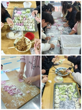 同学们纷纷围坐在桌旁,脸上洋溢着兴奋和期待。大家都跃跃欲试,迫不及待地想要大显身手。有经验的同学手法娴熟,拿起一张饺子皮,放上适量的馅料,手指轻轻一捏,一个漂亮的饺子就诞生了,那饺子的褶子就像花瓣一样整齐美观。而不太熟练的同学则手忙脚乱,有的饺子馅放多了,包起来的时候馅都露出来了;有的饺子形状怪异,像个瘪瘪的小包袱,但大家都乐在其中,欢声笑语不断。为了增加趣味性,同学们发挥想象力,制作出形态各异的饺子。在大家的共同努力下,一盘盘饺子被送入厨房,不一会儿,热腾腾的饺子就出锅了。最后,大家围坐在一起,共享自己亲手包制的饺子,感受着节日的温暖和集体的力量。