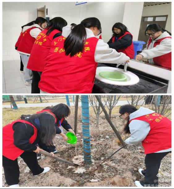志愿者们早早地来到了绿化区做准备工作,他们手持工具、分工明确,有的负责松土,有的负责浇水,还有宣传部的同学负责拍照记录这美好的时刻。在大家的共同努力下,原本略显干硬的土地变得松软湿润,为树木提供了良好的生长环境。
