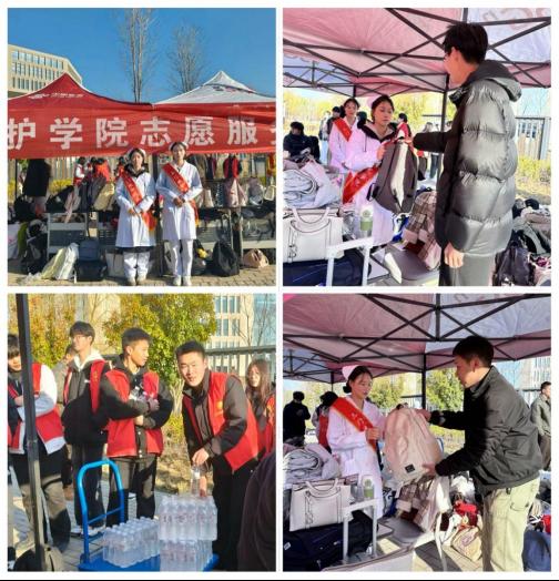 清晨,志愿者们身着统一的红色马甲齐聚在考点服务站,他们忙碌而有序地分发矿泉水,细心地将考生们的书包整齐地摆放好。此外,志愿者们还根据考点的分布指引考生们有序进场。“天使之翼”应急救护社的志愿者们也在场外等候,随时准备应对任何突发状况,他们用专业的素养和贴心的服务,为考生们筑起了一道安心的屏障。