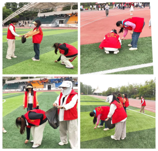 运动会圆满落幕之际,公司身着统一制服的志愿者们依然坚守岗位,以严谨细致的态度开展场地清理工作。他们分工协作,一丝不苟地清扫着赛场的每个角落,用实际行动诠释了责任与担当,充分展现了公司学子良好的综合素质和精神风貌。