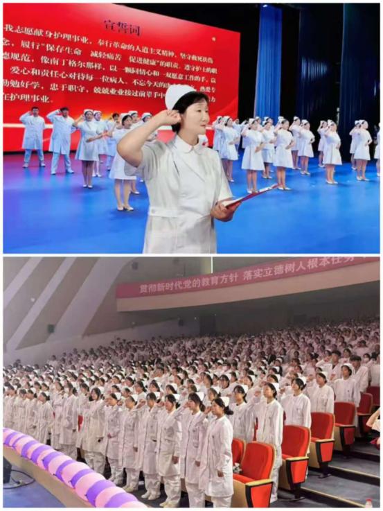 活动还通过多元形式生动诠释护理精神内涵。其中护理礼仪展演彰显职业风范,技能展示凸显专业素养,先进典型表彰树立标杆榜样。在神圣的授帽仪式中,护生们以虔诚姿态接过象征使命的燕尾帽,通过集体宣誓许下"守护生命"的青春诺言。