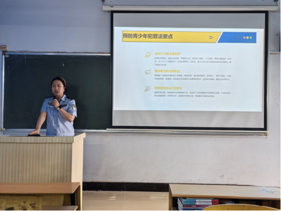 讲座伊始,张颖警官以贴近校园生活的真实案例为切入点,用通俗易懂的语言,结合生动形象的视频、图片,深入浅出地讲解了与青少年密切相关的法律知识。针对校园霸凌,详细剖析了其表现形式、危害后果以及应对方法,强调无论作为受害者、旁观者还是施暴者,都要深刻认识到校园欺凌的严重性,鼓励同学们勇敢对校园欺凌说"不",学会运用法律武器维护自身合法权益;张颖警官还通过列举未成年人因沉迷网络、交友不慎等引发的违法犯罪案例,警示同学们要增强自我约束能力,树立正确的价值观,自觉抵制不良行为的诱惑;同时,还围绕反诈防骗、宿舍消防法制课、刀具管控等内容,结合相关法律法规,进行了全面细致的讲解,引导同学们养成良好的行为习惯,提高安全防范意识。