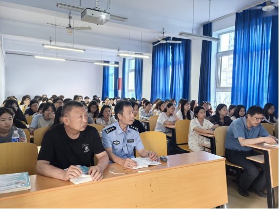 为增强全体师生的法治观念,提升大家的法律意识和自我保护能力,营造安全、文明、和谐的校园环境,5月22日下午,集团特邀陕州区公安局原店镇派出所张颖、郝红峰两位警官走进校园,在五楼多媒体教室为部分师生带来了一堂别开生面、干货满满的法治讲座。